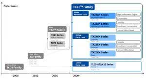TXZxA +陣容將是功能對準引腳兼容現(xiàn)有的65nm TXZ設(shè)備使客戶能夠無縫地遷移到新的微控制器系列,東芝表示。